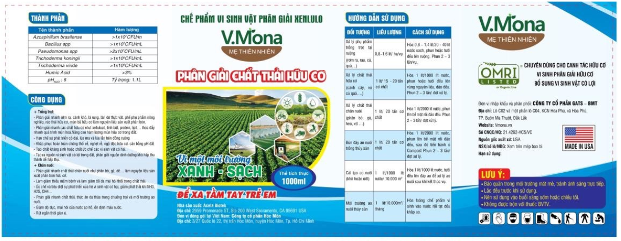 CHẾ PHẨM VI SINH VẬT PHÂN GIẢI XENLULO V.MONA (USA - 100ML)