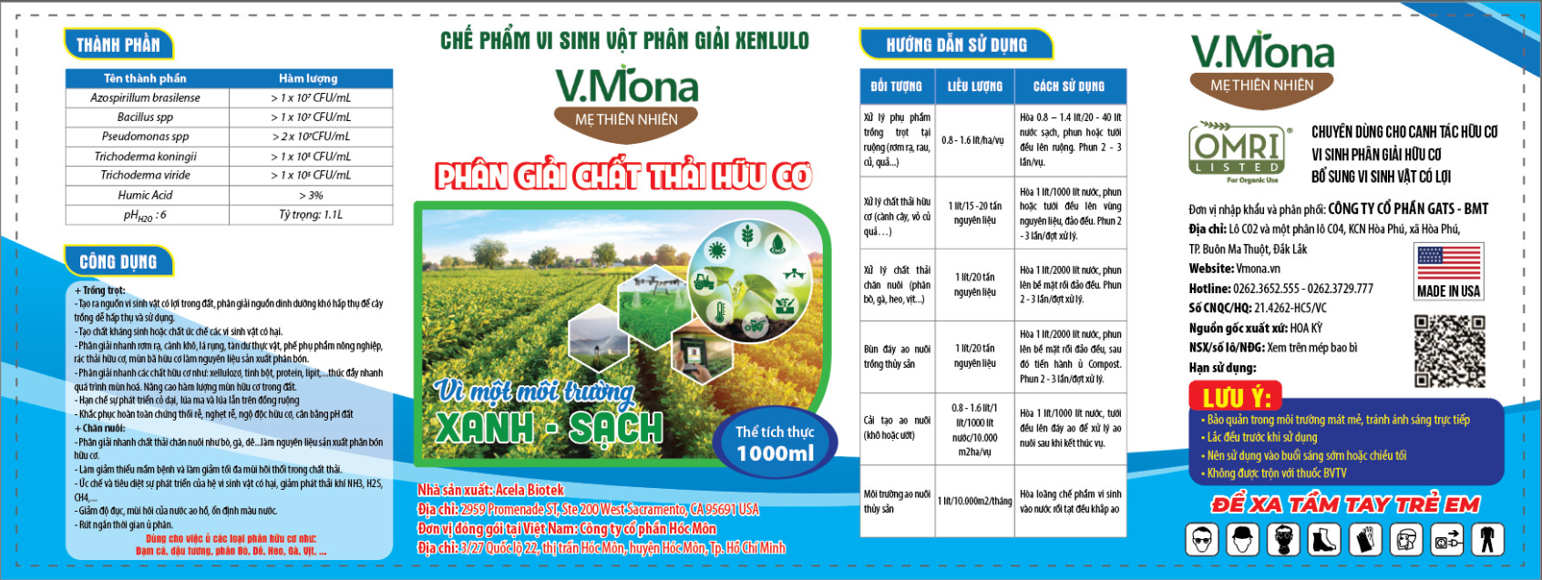 Hòa 1 lít/2000 lít nước, phun lên bề mặt rồi đảo đều, sau đó tiến hành ủ Compost