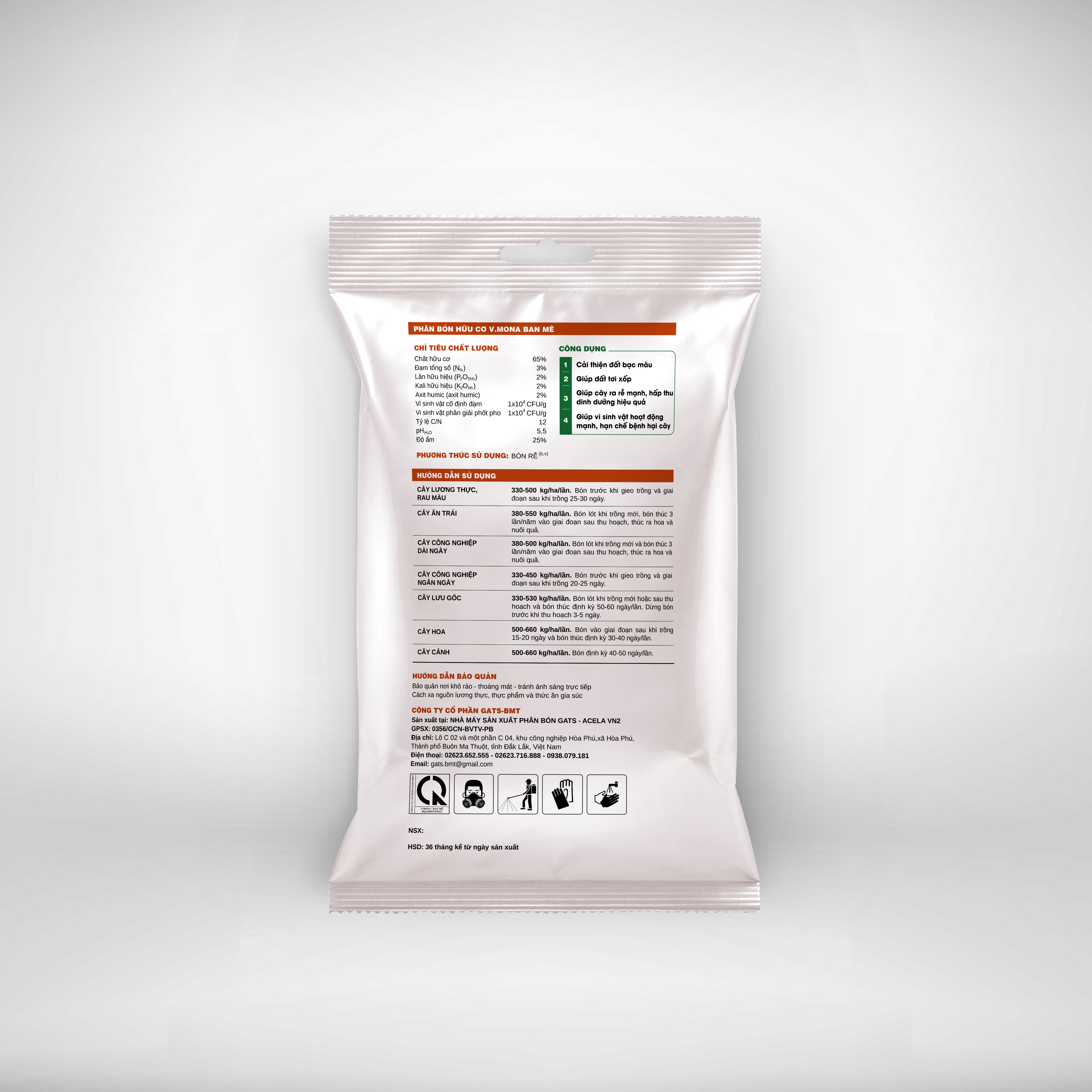 - Vi sinh vật cố định đạm: 1x104 CFU/g;